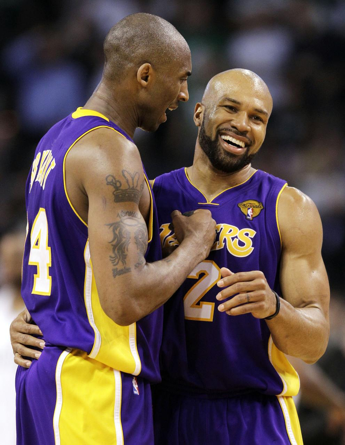 费舍尔:我认为最重大的,不,我不想说最重大,但可能是最高光的时刻,是2004年那场比赛,还剩0.4秒时,我投进了制胜一球。那是我NBA生涯中的第一个绝杀球。当时球馆里汇聚了众多名人堂级别的天才,从格雷格·波波维奇和菲尔·杰克逊两位教练,到奥尼尔、科比、罗伯特·霍里、蒂姆·邓肯、托尼·帕克,这份名单可以一直列下去。
