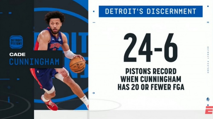 上一场26中5!坎宁安本赛季出手不超20次 活塞战绩为24-6