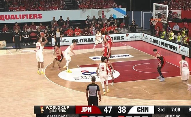 大将豪气胆边生!贺希宁兜到弧顶空位三分空心命中!打停日本!