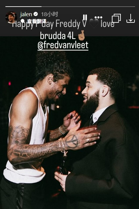 杰伦·格林晒照为前队友范弗里特庆生:永远的兄弟🤞