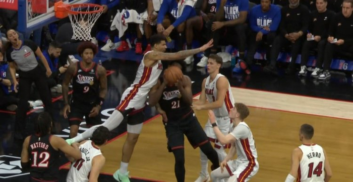 望无大碍!恩比德被韦尔顶到右侧肋部 回更衣室后已坐回替补席