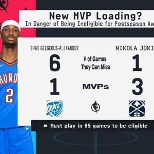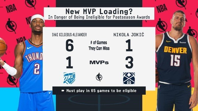 两大热门!想参与MVP评选 SGA和约基奇最多只能再缺席6场和1场