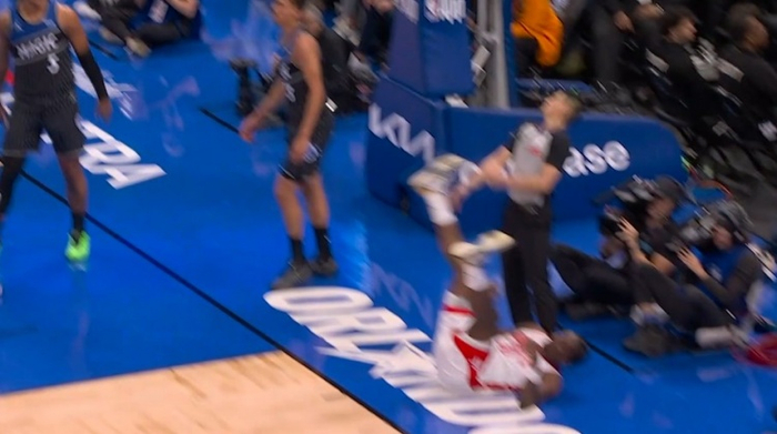 好一个倒挂金钩!卡佩拉被犯规摔倒踢到韩国裁判黄仁泰的嘴