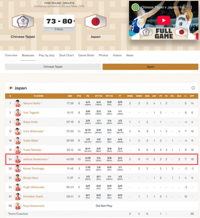 目前这支日本队的后卫,真的是一群言过其实的彩笔。(PS:有兴趣的,可以看看他们前两场打中国台湾是什么表现,就当是这篇文章的彩蛋了)