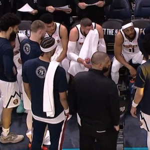 约老师课堂开课了!暂停时约基奇起身训话 众队友认真听讲