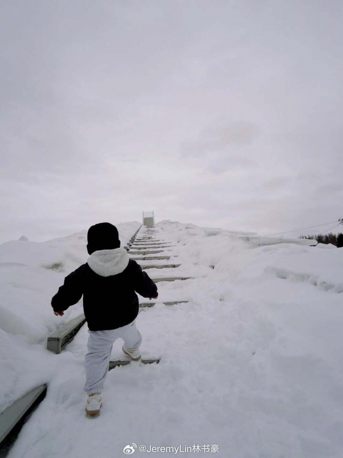 书豪晒照告别2月:儿子第一次看雪 找各种办法为了不让自己打呼