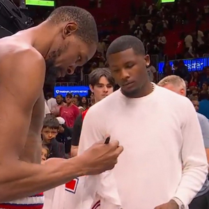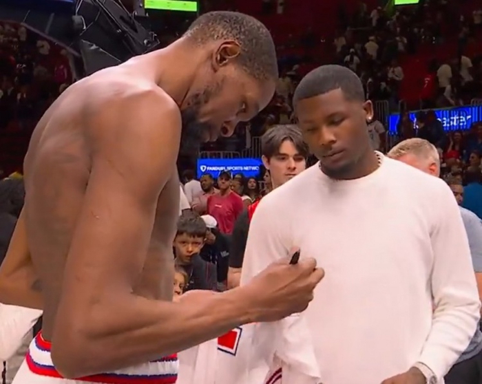 赛后,杜兰特和辛辛那提猛虎队外接手Tee Higgins交换球衣。