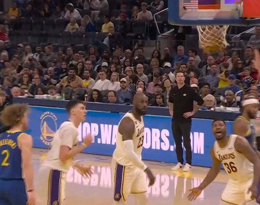 穷追猛打!詹姆斯三分飙中后奋力补篮得手 可惜加罚没有
