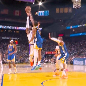 当头一棒!梅尔顿积极跟防 高高跃起送詹姆斯迎面大帽