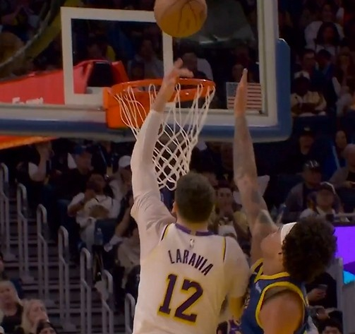 仙人指路!东契奇精准长传助攻拉拉维亚打进加罚 湖人领先到30分