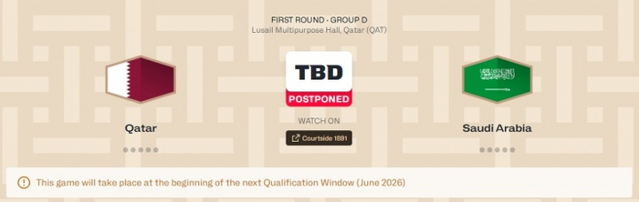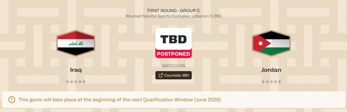 FIBA官方发布声明:鉴于近日亚洲局势发展,FIBA决定推迟本窗口期西亚地区剩余的四场世亚预比赛:伊拉克vs约旦、伊朗vs叙利亚、黎巴嫩vs印度、卡塔尔vs沙特阿拉伯。
