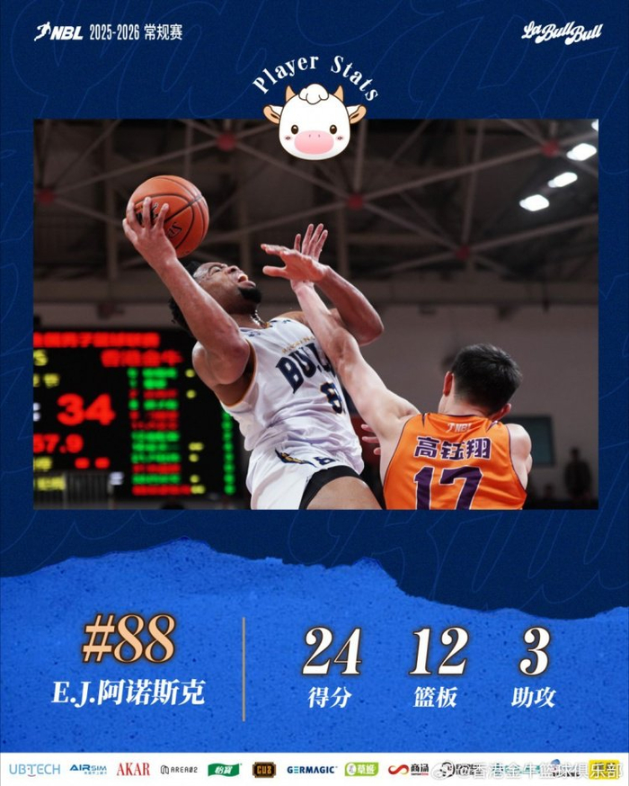 今晚一战,阿诺斯克与厄特尔双核驱动,联手轰下49分。厄特尔里突外投砍下25分8篮板2助攻1抢断,阿诺斯克则斩获24分12篮板3助攻的两双数据。