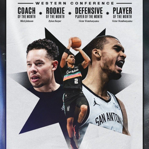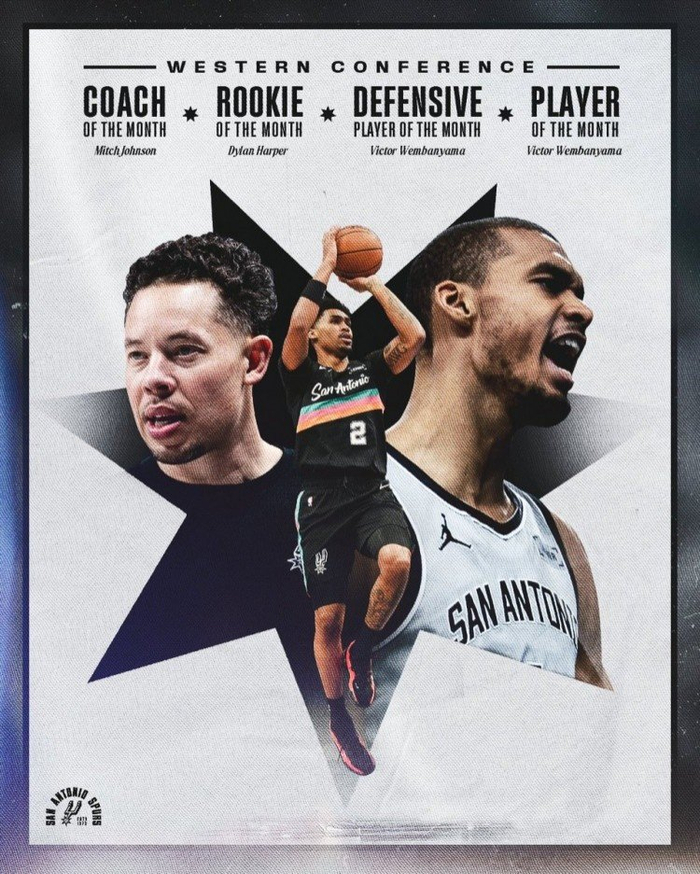 马刺横扫月最佳所有荣誉!文班亚马:这太棒了 让我们继续前进!