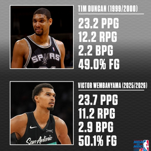 文班&邓肯生涯第3年数据对比!邓肯23+12+2 文班23+11+3