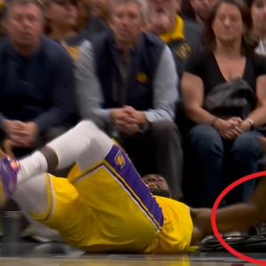 詹姆斯今日对阵掘金在末节一次上篮命中后失衡落地肘部砸到场边摄影师鞋子受伤。从慢镜头可以看出摄影师所穿着的是361°为约基奇设计的小丑一代战靴。