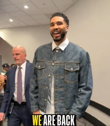赛前塔图姆笑容满面到场,对着摄像机表示:“我们强势回归(We are so back)!我们回来啦!”
