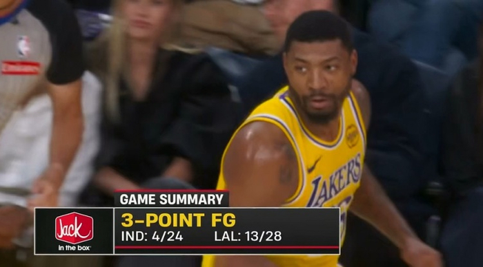 实属罕见!湖人本场三分28中13&领先近20分 步行者仅24中4