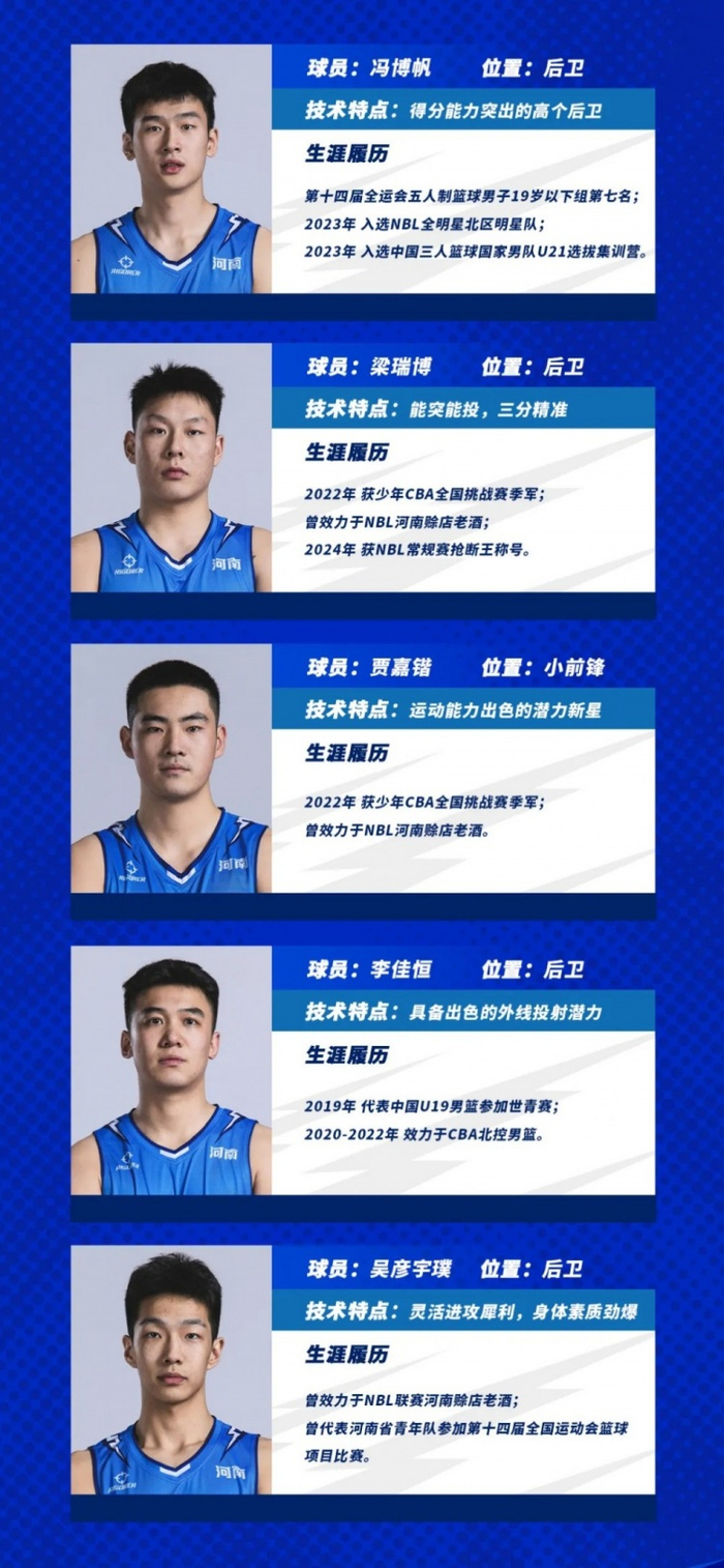 焦作文旅是本赛季六支新军之一,他们的总经理李根是中国篮球名宿,前国家队队员,CBA总冠军成员;助理教练薛玉洋也是中国篮球名宿,曾参加NBA选秀并被小牛队选中。外籍球员霍尔德得分能力出众,本赛季曾有过得分50+的亮眼表现,威姆斯是球员兼助理教练,曾是CBA总冠军成员,冯博帆和梁瑞博都拥有较强的得分能力。