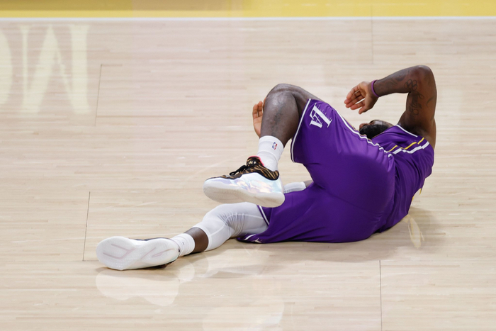 “拜托兄弟,这家伙想去参加吹牛老爹的派对呢。你看,最后还得让人扶起来。我真服了。勒布朗,你这也太离谱了。有些人就是想早退去参加吹牛老爹的派对。勒布朗,你到底怎么回事?你演技烂透了。你是世界上最差的演员,但这是在欺骗比赛。我之前说的欺骗比赛,指的就是这种行为。”