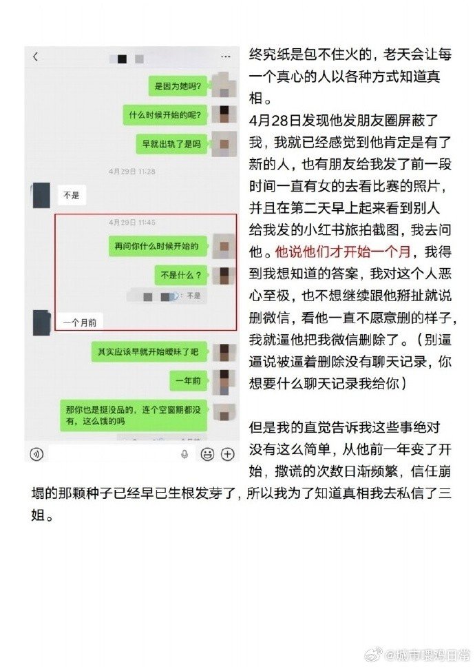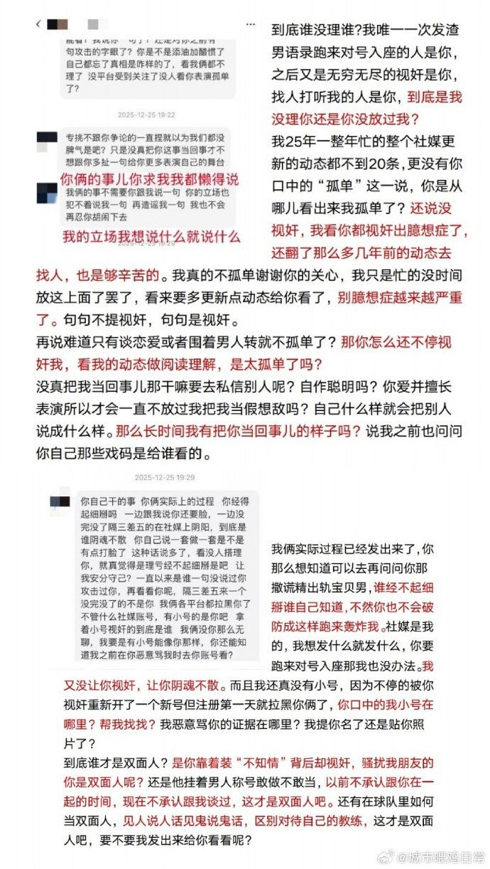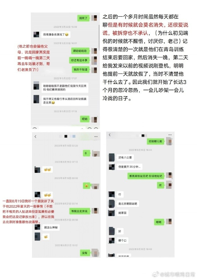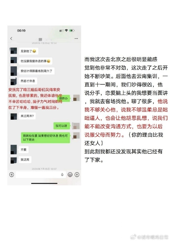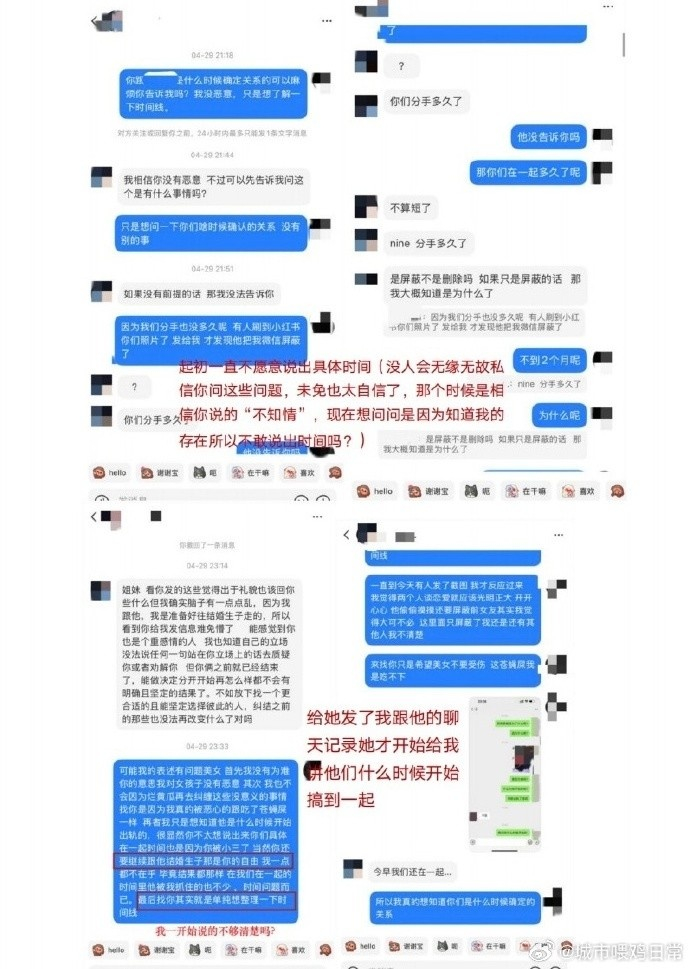 直播吧3月9日讯 此前,网名@城市喂鸡日常晒出多张图片,表示北京某篮球俱乐部的球员L某劈腿,还被这位L某的小三骚扰。