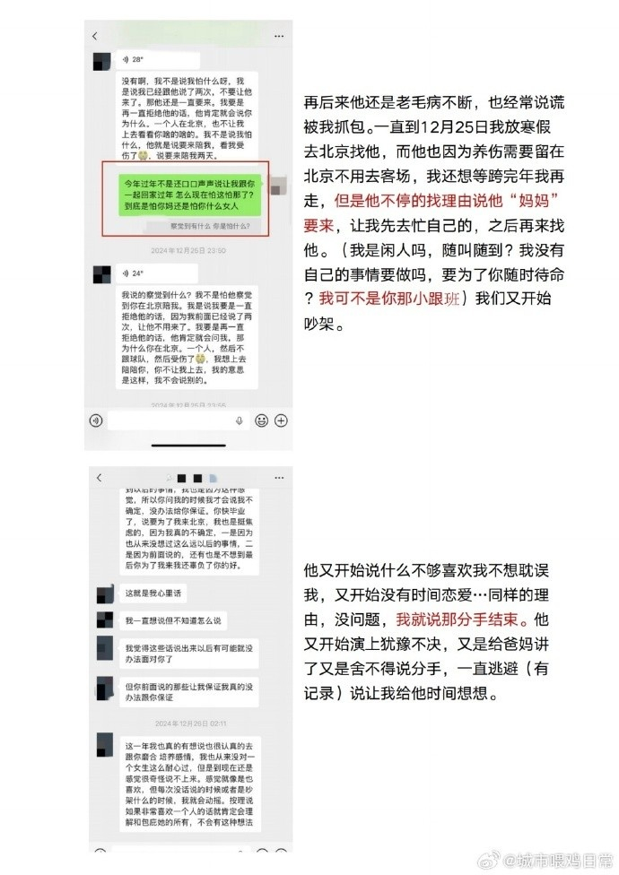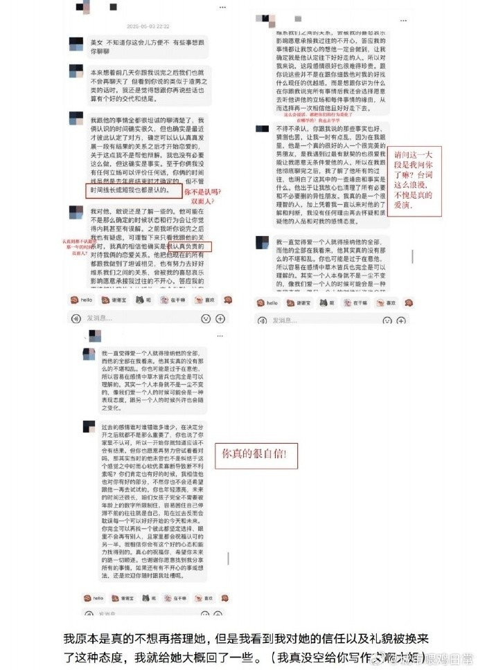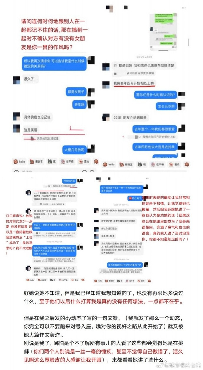 @城市喂鸡日常晒出多张与L某的聊天纪录截图,并写道:“《撒谎精滥情篇》”,详见下图: