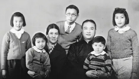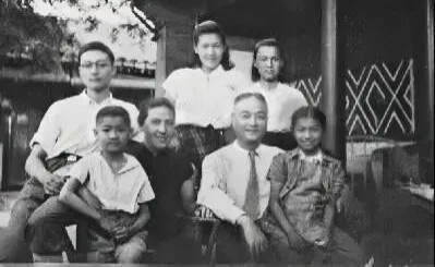 全家福,摄于1944年,大佛寺居所。后排左起:周乃文、周懿贞、周懿芬;前排左起:周乃扬、许淑文、周学章、周懿娴。