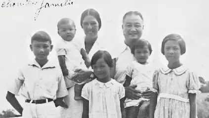 全家福,摄于1939年。左起:周懿芬、周懿娴、许淑文、周乃文、周学章、周乃扬、周懿贞。