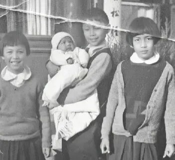 大哥周乃文抱着不满1岁的周懿娴,右一为二姐周懿贞,左一为三姐周懿芬。摄于1934年,朗润园10号。
