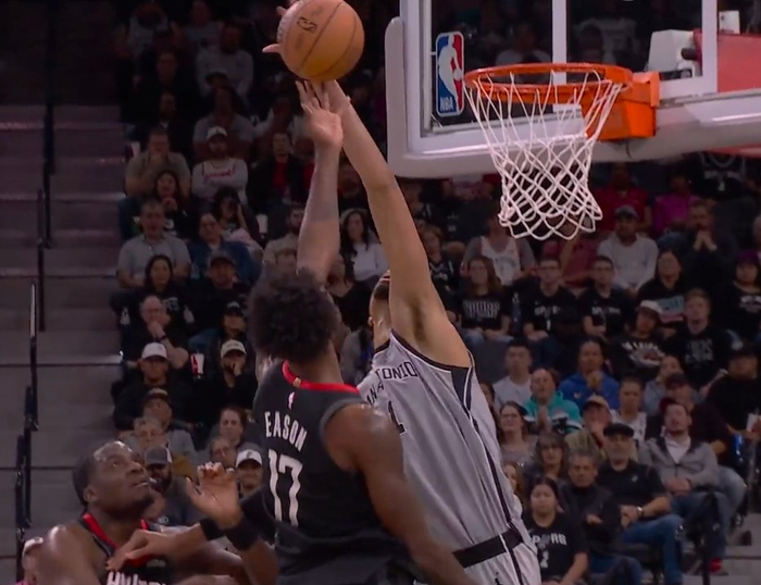 太变态了!文班右手还和卡佩拉卡着位 突然暴起左手鹰爪血帽伊森