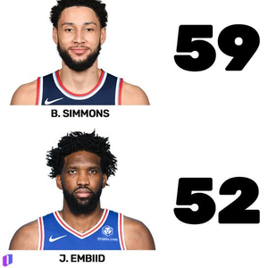 意外吗?自24年二月以来出战场次:本·西蒙斯59场 恩比德52场