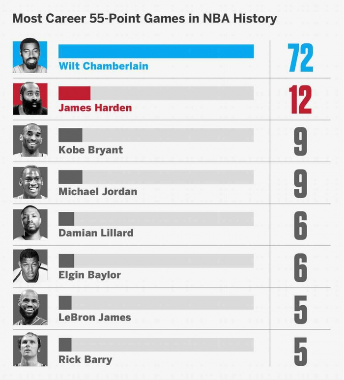 大帅这俩纪录很难破!张伯伦72场55+&开季连续23场30+ 均断层领跑