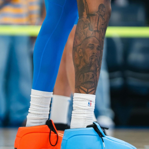 今天缺席比赛的杰伦·威廉姆斯在赛前也进行了常规训练。而他上脚了一双Adidas Crazy 2 “OKC” PE。球鞋采用了雷霆球衣配色的蓝橙鸳鸯配色。