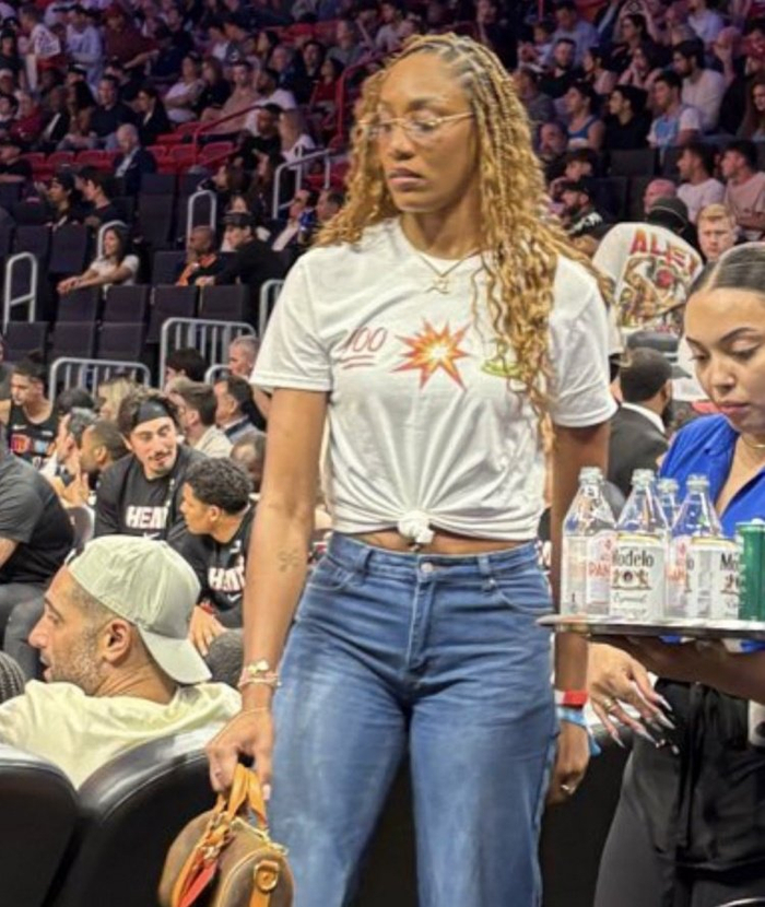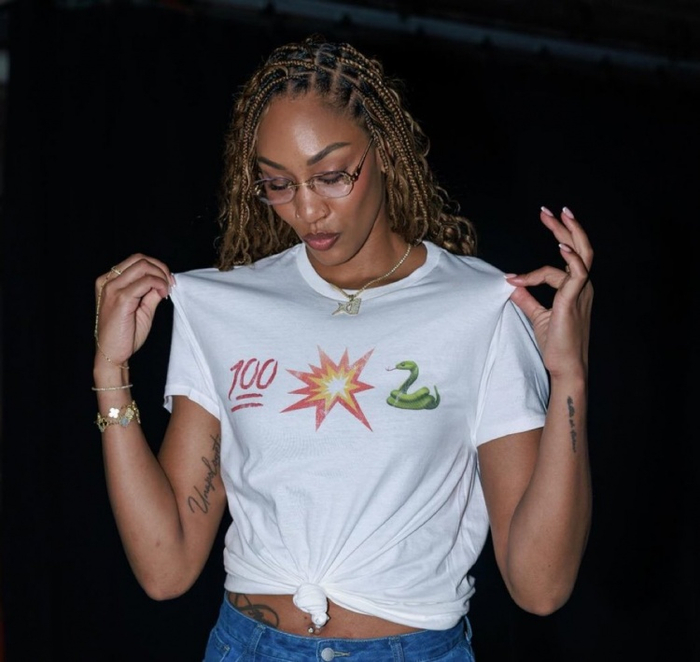 阿贾上身T恤支持阿德巴约砍83分 衣服上印有图案:💯💥🐍