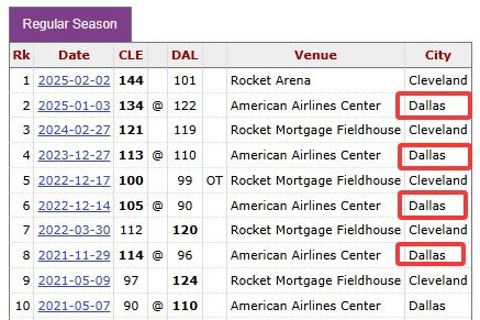 据统计,骑士对阵独行侠已经7连胜,而近5次做客美航中心也是保持全胜!