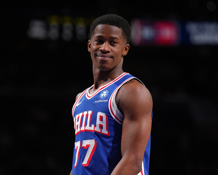 小鬼当家!76人多人缺阵 埃奇库姆半场砍双方最高10分带队领先
