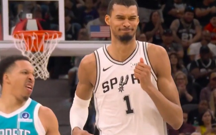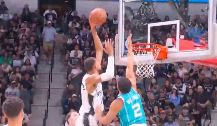 我只是微微一笑~文班亚马单打格威 转身蹦起左手单臂隔扣很轻松!