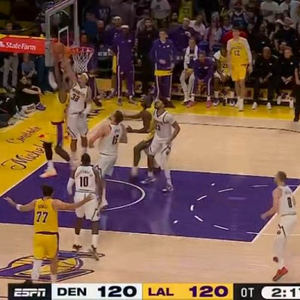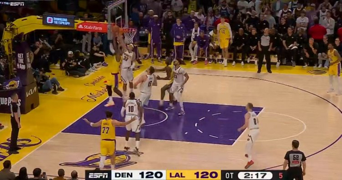 飞不动了!詹姆斯接球强攻 遭阿隆·戈登遮天血帽