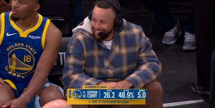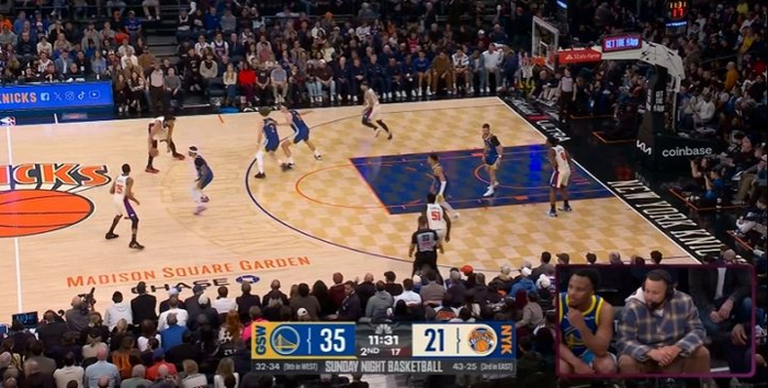 找点儿班上!全美直播 因伤缺战库里坐替补席和解说热聊