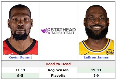 如无意外,联盟昔日大小王詹姆斯和杜兰特将又一次正面交锋。双方在常规赛曾交手30次,杜兰特11胜19负落入下风;季后赛双方交手14次,杜兰特9胜5负占优。
