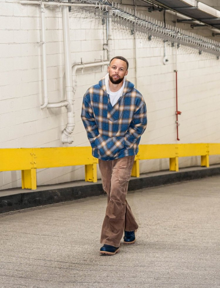 库里入场时上脚了一双添柏岚(Timberland)为其专门制作仅此一双的靴子,靴子后跟还有库里个人的专属Logo。