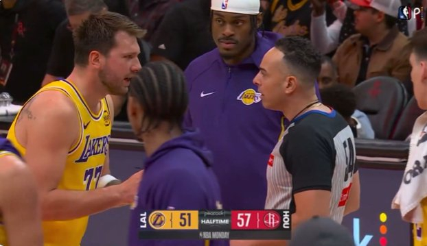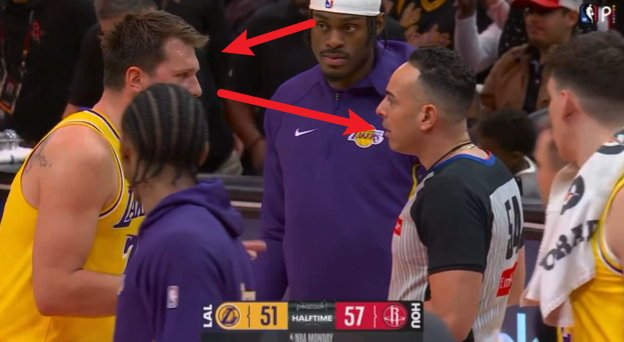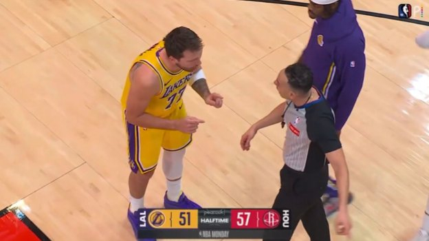 东契奇先是找这个白人裁判阿科斯塔争吵,范德彪陪着