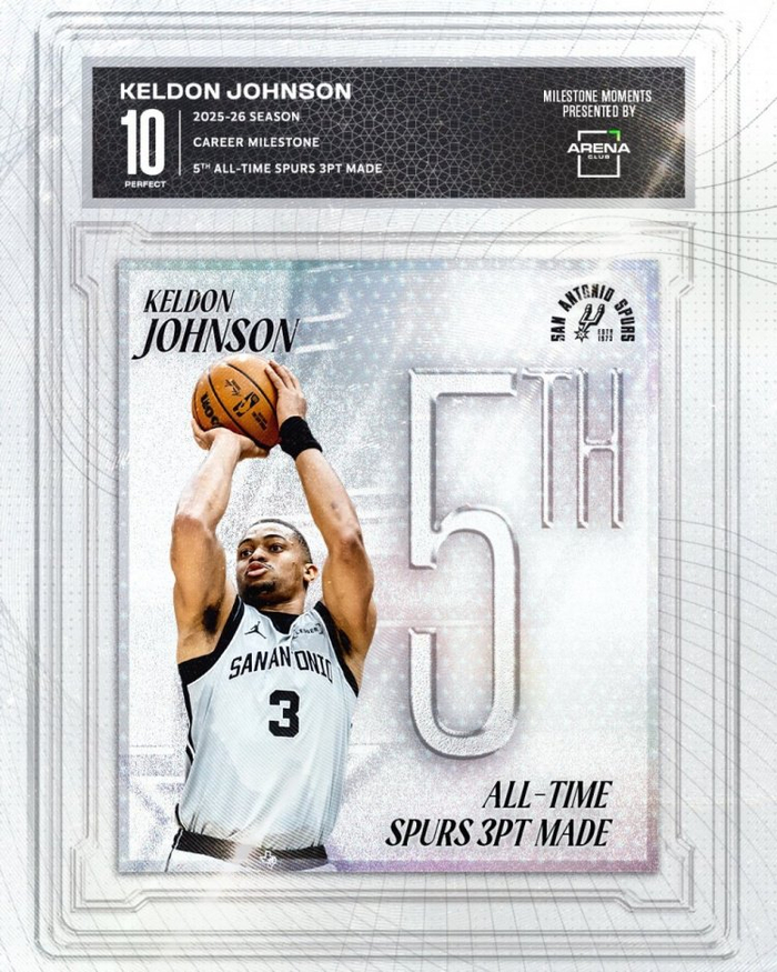 截至发稿他命中2记三分,马刺生涯三分命中数662记,超越鲍文升至队史第五。