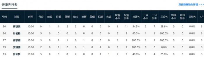 天津:蒋祺禹14分2篮板2助攻。