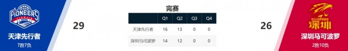天津29-26战胜深圳。