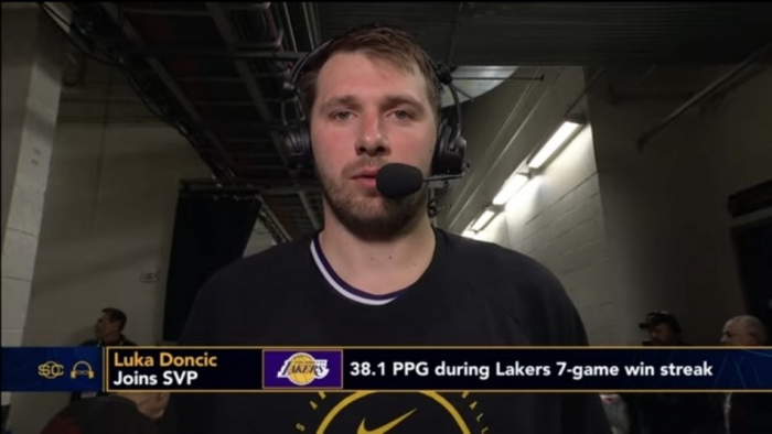 直播吧3月19日讯 今日,湖人124-116客场击败火箭,豪取七连胜。赛后,湖人球星东契奇接受了采访。