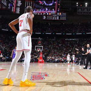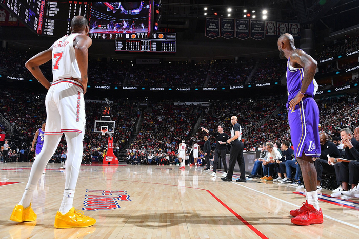 杜兰特在上场比赛赛后表示感觉火箭的主场氛围就像湖人主场那般,对此詹姆斯表示:“不,我们感觉我们就在打客场,当然,我们打出了一些精彩好球,看台上也有一些球迷,我们一向很喜欢看到湖人球迷远征至客场给我们加油,或者是当地的湖人球迷到场。但这场感觉就像客场比赛,今晚我们也是带着客场心态来打的。没错,这感觉像是一场季后赛。”