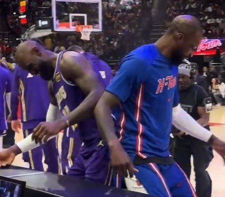 两个老不正经🫣!詹姆斯和杰夫·格林顶臀互动 好不激情