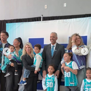 “我非常高兴父亲能获得这份荣誉,不仅仅因为他是前NBA球员,让我有机会目睹他的每一个动作,更因为他是一位教我打球的父亲,甚至比我本人还要爱篮球。他向我展示了成为一名真正的职业球员的意义,以及如何通过努力赢得这一切。所以,篮球对于我们家族来说就是重要的一部分。今天能够和我的兄弟(赛斯)一起出席仪式,对我来说意义重大。显然,库里家族的历史与夏洛特紧密相连,而30号球衣以后将永被铭记,这对我们来说意味着所有。这也是我的父亲仍然住在这里的原因,这里依然是我们的家。”库里表示。