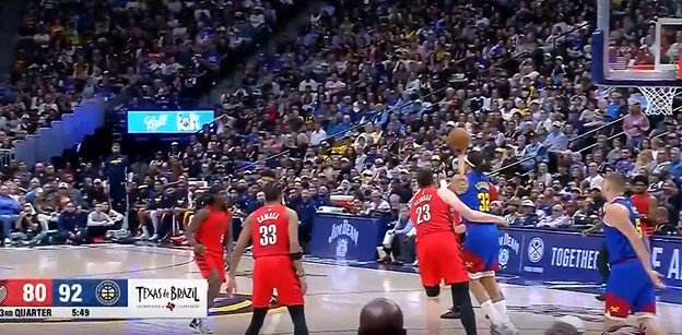 写意!阿隆·戈登拼到球权随即脑后妙传 约基奇篮下轻松上进