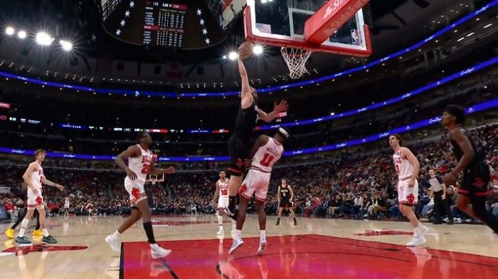 这球很坚决!申京转身过人直杀篮下 起飞单臂隔扣米勒打进加罚